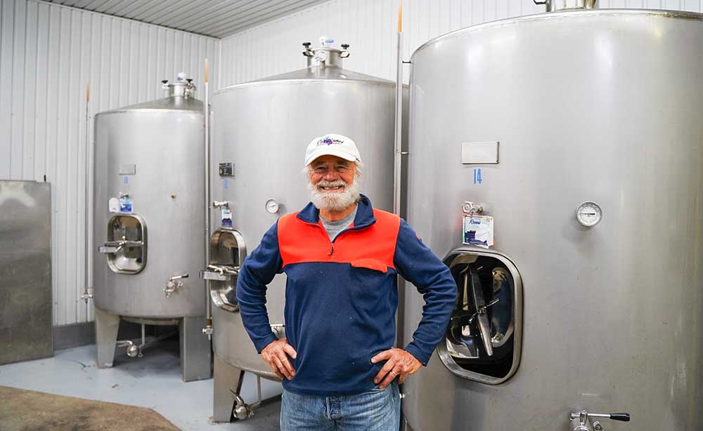 John: My wife and I sailed here from Ontario, 30 years ago and my dream was to build a house on the ocean – Prince Edward Island, a pretty nice place but I ended up having to have something to do and I love wine so we started planting grape vines and here we are 30 years later still making wine.